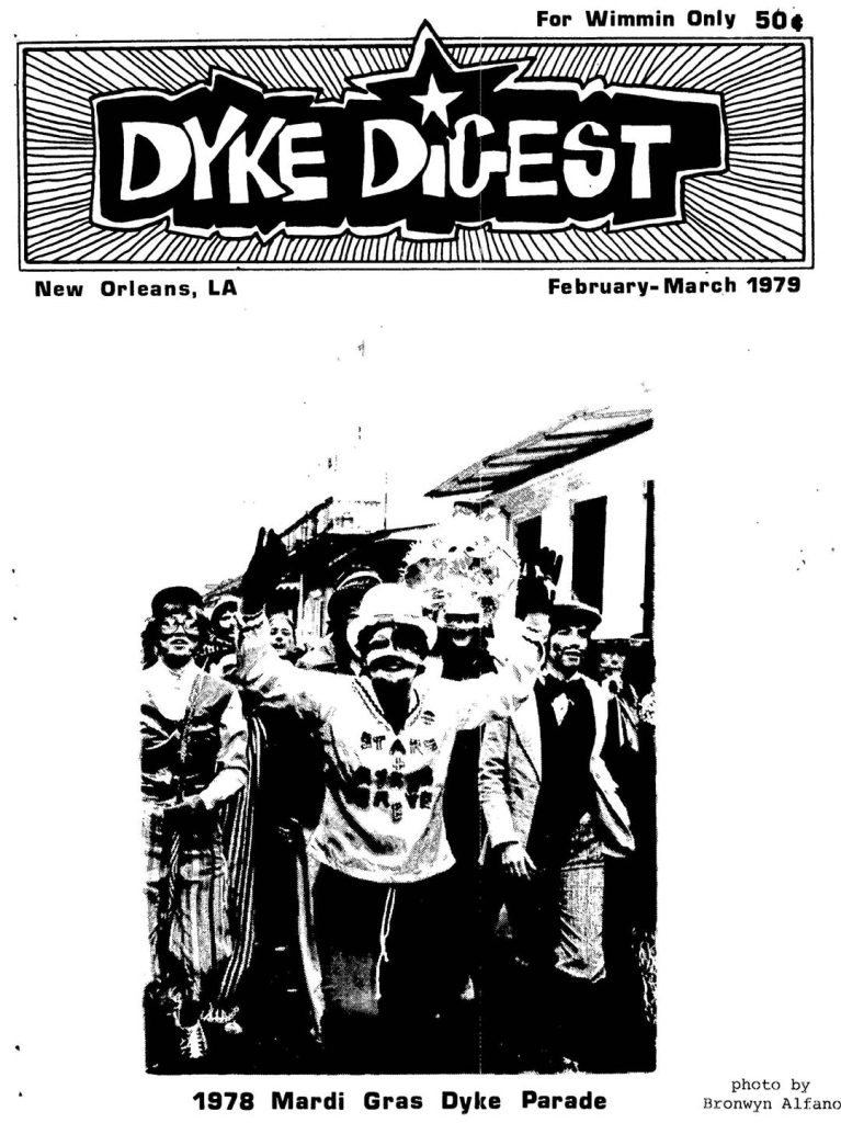 Dyke Digest was a New Orleans based publication in the late 1970s. The Archives Project recently acquired the February-March 1979 issue, which is available to the general public here on our website. If you have other issues of Dyke Digest, we would love to digitize those and make them available as well. Lesbian History will be the Archives Project’s 2026 programming focus. Stay tuned for more information.